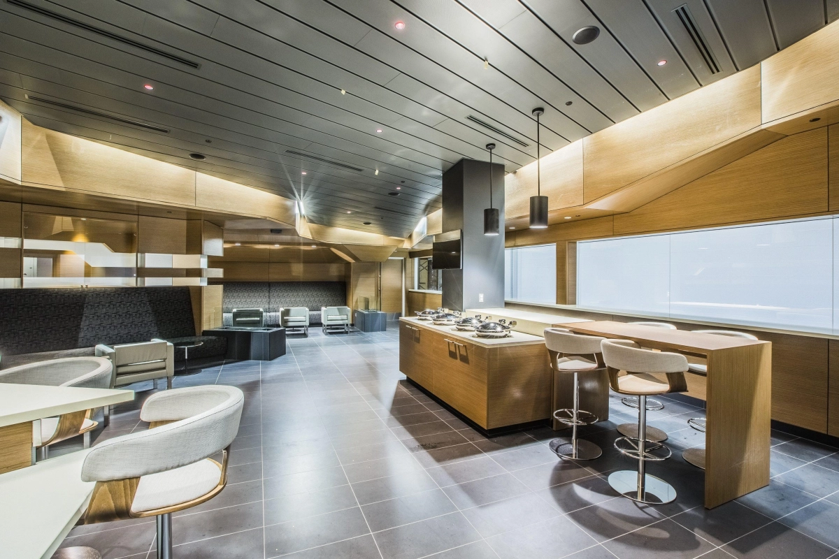 Les loges corporatives proposent un espace sophistiqué où confort et service sur-mesure se rencontrent. Situées au 4e et 5e étage, elles offrent une vue panoramique ainsi qu’un espace lounge élégant avec bar complet, parfait pour savourer chaque instant dans un environnement unique. Option de menu disponible sur demande.