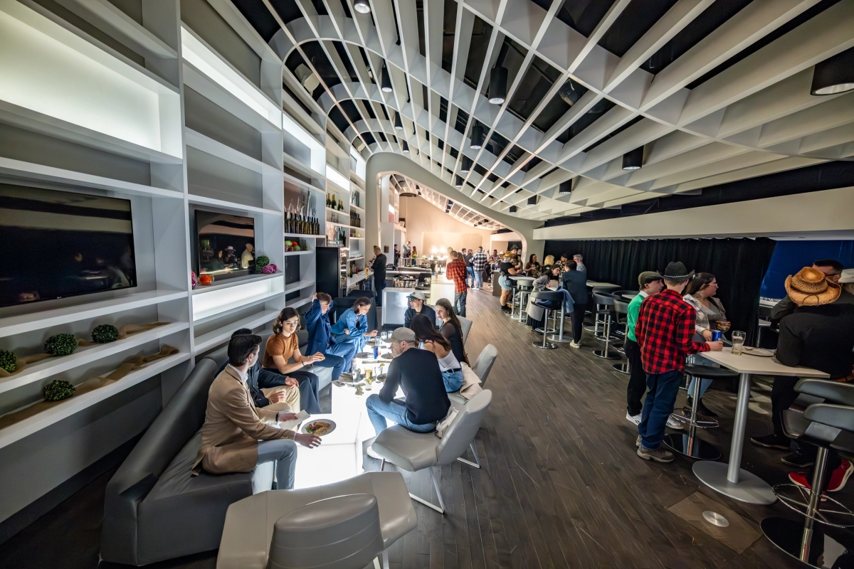 Un lieu à la fois chic et accueillant, où le bar privé, le buffet gourmand, le service soigné et l’ambiance feutrée s’harmonisent pour créer une expérience mémorable, avec une vue imprenable sur l’événement depuis les loges corbeille du Loft.